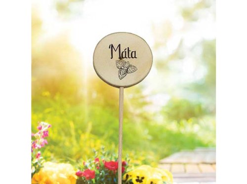 Praktický a stylový dřevěný zápich vám usnadní orientaci v bylinkové zahrádce. Ideální pro květináče i venkovní záhony. Ručně vyrobený zápich je zároveň krásnou dekorací, která dodá vašim rostlinám osobitý šmrnc. Průměr dřevěného kolečka 5 – 8 cm, délka cca 30 cm.