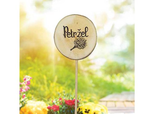 Praktický a stylový dřevěný zápich vám usnadní orientaci v bylinkové zahrádce. Ideální pro květináče i venkovní záhony. Ručně vyrobený zápich je zároveň krásnou dekorací, která dodá vašim rostlinám osobitý šmrnc. Průměr dřevěného kolečka 5 – 8 cm, délka cca 30 cm.
