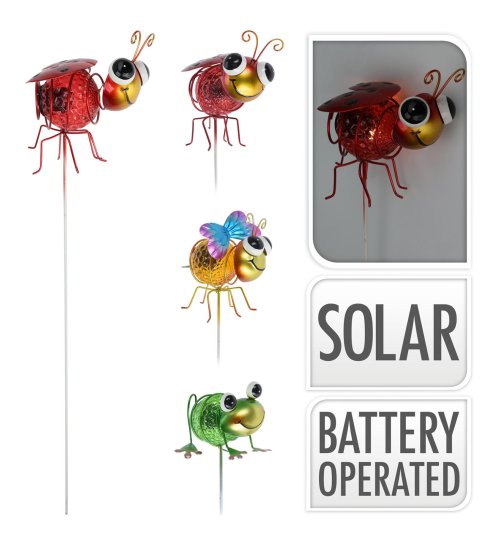 Zápich HMYZ v. 60 cm, LED, solární, kov / PH, mix 3 druhů.