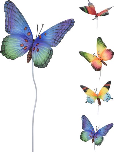 Zápich MOTÝL v. 69 cm, mix barev. výška: 69 cm mix 4 barevných variant: červená, zeleno - růžová, žluto - modrá, modro - zelená Dekorativní zahradní zápich MOTÝL originálně doplní Vaší zahradu.