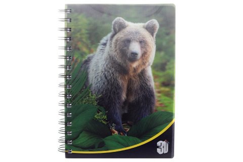 Zápisník s 3D efektem s motivem Medvěda. V zápisníku je celkem 100 listů, z nichž je 50 linkovaných a 50 nelinkovaných. Formát A5. Výrobek není hračka.