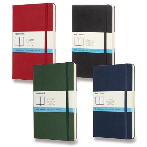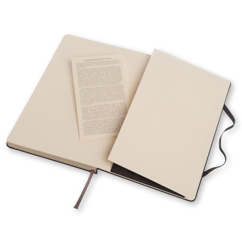 The Classic Collection featuring bold new colors and a variety of page layouts just waiting to be filled with your ideas. Including all the characteristic elements of the legendary notebook: rounded corners, ivory pages, elastic closure, bookmark ribbon and expandable back pocket - enclosed within a colorful hard cover. - Colored Hard Cover Classic Notebook - Rounded corners- Elastic closure - Moleskine ivory paper- Matching ribbon bookmark - Paper: 70 gsm, acid-free, ivory, lined- Incase of Loss printed on the flyleaf- Expandable inner pocket in the back- Reusable paperband B-SIDE featuring additional printed tools- Lies flat, opens at 180° - The history of Moleskine is inside