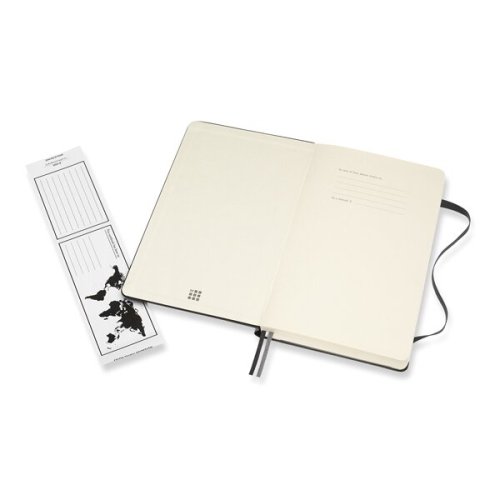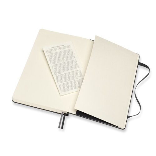 Zápisník s větším počtem stran má pevnou, ve hřbetu šitou vazbu v kartonových deskách. Obepíná ho pružná páska proti samovolnému otevírání. Každý zápisník je dále vybaven pořadačem poznámek, který je vyroben z tkaniny a kartonu, textilní záložkou a letákem s historií Moleskine. Papír s gramáží 70 g/m2 neobsahuje kyseliny.