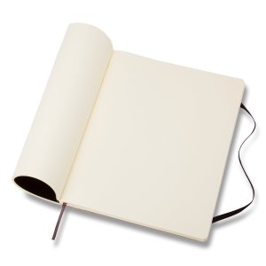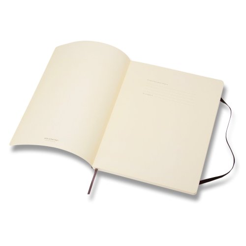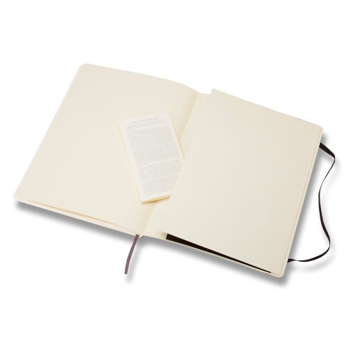 Zápisník s měkkou, ve hřbetu šitou vazbou v kartonových deskách, obepnutý pružnou páskou proti samovolnému otevírání. Zápisník je vybaven pořadačem poznámek, který je vyroben z tkaniny a kartonu, textilní záložkou a letákem s historií MOLESKINE. Gramáž papíru 70 g/m2, neobsahuje kyseliny.Rozměr: 19 x 25 cm, 96 listů, čistý