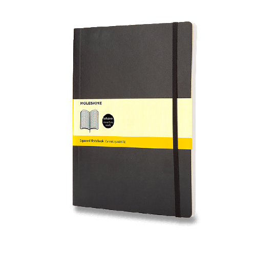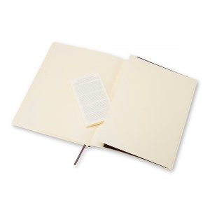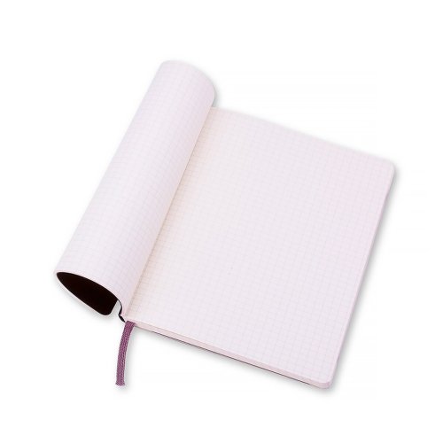 Zápisník s měkkou, ve hřbetu šitou vazbou v kartonových deskách, obepnutý pružnou páskou proti samovolnému otevírání. Zápisník je vybaven pořadačem poznámek, který je vyroben z tkaniny a kartonu, textilní záložkou a letákem s historií MOLESKINE. Gramáž papíru 70 g/m2, neobsahuje kyseliny. Rozměr: 19 x 25 cm, 96 listů, čtverečkovaný