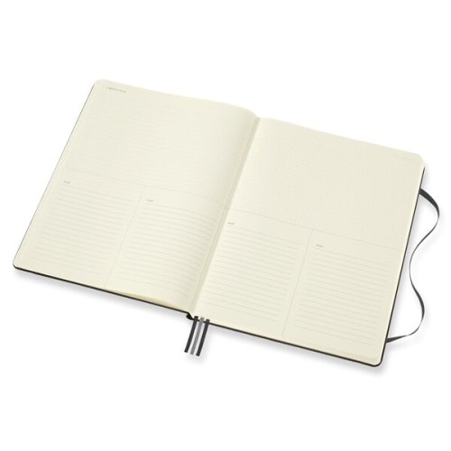 Novinka professional zápisník projektový. Tento originální nedatovaný zápisník je určený opravdovým profesionálům, neboť spojuje výhody diáře s výhodami zápisníku: doplňte dny a data, jak uznáte za vhodné, použijte tolik stran, kolik na konkrétní den zrovna potřebujete! Tento černý projektový zápisník má pevnou, ve hřbetu šitou vazbu v kartonových deskách. Obepíná ho pružná páska proti samovolnému otevírání. Zápisník je rozdělen do tří hlavních sekcí, z nichž káždá je věnována konkretnímu účelu - inspirace, plánování a protokolování, dále obsahuje nedatované plánovací sekce, s ročními, 4měsíčními, měsíčními a týdenními přehledy. Pro snadnou orientaci jsou stránky číslované, poslední stránky číslované nejsou a lze je lehce vytrhnout. Součástí zápisníky jsou samolepky, praktická vnitřní kapsa, která je vyrobena z tkaniny a kartonu, a leták s historií Moleskine. Papír s gramáží 70 g/m2 neobsahuje kyseliny.