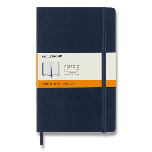 Zápisník s měkkou, ve hřbetu šitou vazbou v kartonových deskách, obepnutý pružnou páskou proti samovolnému otevírání. Zápisník je vybaven pořadačem poznámek, který je vyroben z tkaniny a kartonu, textilní záložkou a letákem s historií MOLESKINE. Gramáž papíru 70 g/m2, neobsahuje kyseliny.Rozměr: 13 x 21 cm, 96 listů, linkovaný