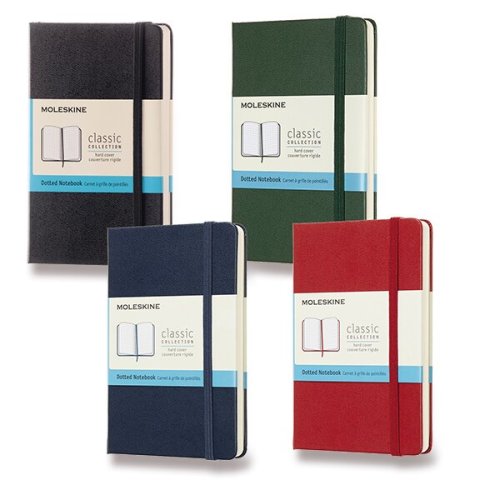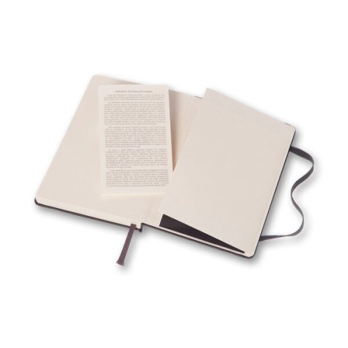 This Moleskine Classic Pocket Notebook jas a black hard cover and is perfect for writing thoughts and passing notes. The back of the paper banderole can be saved for later use. The ribbon, bookmark and expandable inner pocket match the cover color. Specifications: - Layout: Dotted Paper - Dimensions: 3-1/2" x 5-1/2" - Hard Cover with elastic closure and bookmark ribbon. - Color: Black - Pages: 192 - Expandable Inner-Pocket - Paper Weight: 70 gsm/47 lb.; FSC Certified Paper; Acid-Free (pH Neutral)