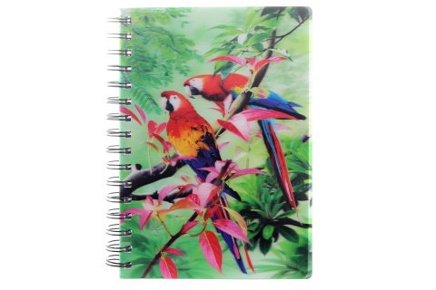 Zápisník s 3D efektem s motivem Papoušků. V zápisníku je celkem 100 listů, z nichž je 50 linkovaných a 50 nelinkovaných. Formát A5. Výrobek není hračka.