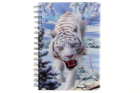 Zápisník s 3D efektem s motivem Bílého tygra. V zápisníku je celkem 100 listů, z nichž je 50 linkovaných a 50 nelinkovaných. Formát A5. Výrobek není hračka.