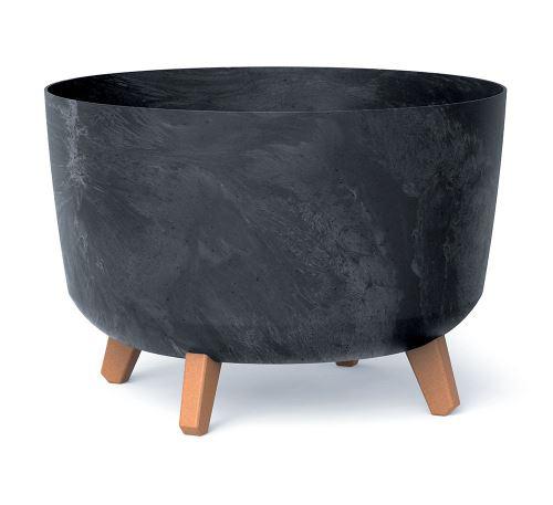 Plastová, samozavlažovací žardinka na krátkých nožkách v imitaci dřeva. Povrch je matný a hladký, což podtrhuje jednoduchost žardinky. V moderním designu imitace betonu, s nádechem klasiky díky nožkám v imitaci dřeva. Kruhového půdorysu. Produkt je dodáván jako set 3v1, jehož obsahem je samotná žardinka, nožky a dno pro samozavlažování. Žardinka je 100% recyklovatelná (plast, žlutý kontejner). Vhodná do interiéru i exteriéru. UV stabilní. Rozměry: průměr 39cm, výška 27cm. Barva: antracit.