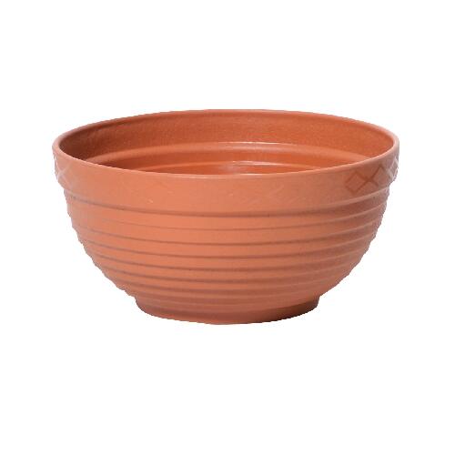 Polypropylenová, vysoce odolná matná žardinka v barvě terakoty o průměru 15 cm a výšce 8 cm. Žardinka je pruhovaná. Pruhy jsou cca 0,5cm široké a jsou za sebou kónicky naskládané. Horní pruh je širší, vyplněn po obvodu kosočtverci navazujícími za sebou. Použivá se zejména v exteriéru na výsadbu rostlin.