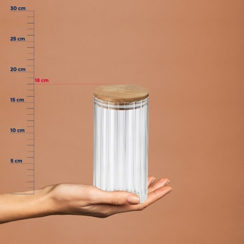 Borosilikátové sklo, víko hnědé akáciové dřevo 9cm , 18cm v