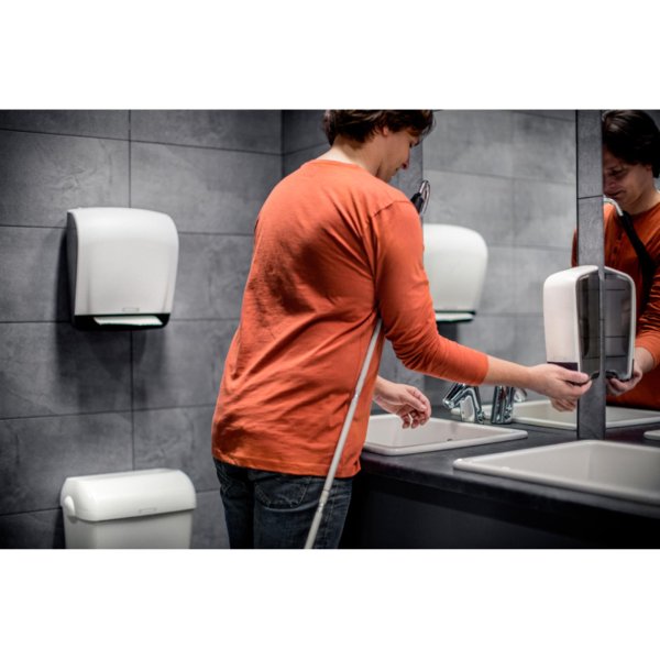 • Dávkovač je pro cartridgové tekuté nebo pěnové mýdlo Katrin 1 l (např.348.401)