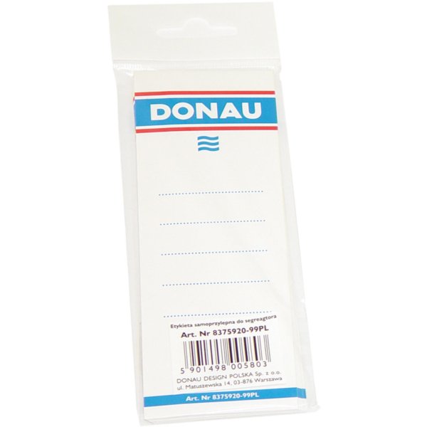 Zasouvací hřbetní etikety pro pořadače Donau se šíří hřbetu 7 cm Rozměry etiket: 4,8 x 15,3 cm (š x v) Balení obsahuje 20 kusů