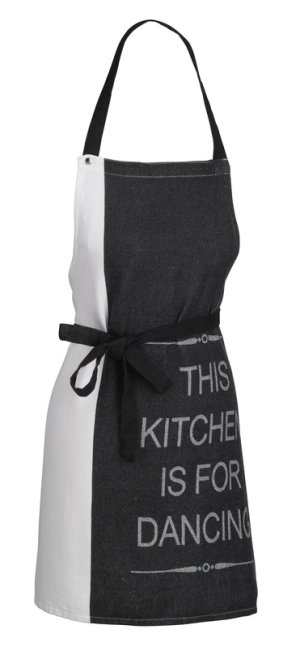 Z kolekce kuchyňského textilu Gianna: kvalitní kuchyňská zástěra ze 100% bavlny, tkaná, v barvě černá/bílá. Výrazným detailem je nápadně umístěný nápis na přední straně: This Kitchen is for Dancing. Rozměry: 80 x 67 cm. Zástěra je součástí rozsáhlé série kuchyňských textilií od kela.100% bavlna 80x67cm