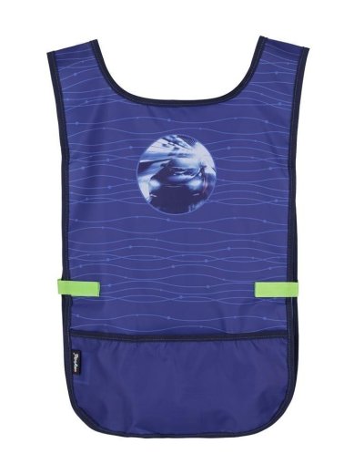 Zástěra pončo do výtvarné výchovy či na jiné tvořící aktivity. Oblékání přes hlavu a po stranách zapínání na suchý zip. Vpředu jedna prostorná kapsa. Materiál 100% polyester.