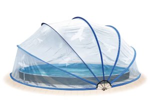 Vlastníte nadzemní nebo zapuštěný bazén o průměru 3,66 m? Pořiďte si k němu zastřešení Pool House Cabrio s pevným ocelovým rámem. Díky tomuto modernímu krytí si zajistíte koupání i za nepříznivého počasí. Voda se ohřívá pomocí skleníkového efektu a vy si prodloužíte koupací sezónu. Lépe udržíte teplotu vody i během chladnějších dní a nocí. Můžete ho otevírat, zavírat nebo sklápět tak, jak potřebujete. K dispozici máte zámky, které zabrání nechtěnému otevření. Zastřešení navíc můžete využít také na přikrytí vířivek, pískovišť nebo zahradního nábytku.