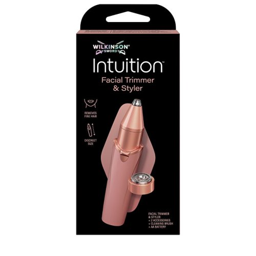 Zastřihovač Wilkinson Facial Perfect Finish 2v1 pro odstraňování i těch nejjemnějších chloupků na tváři. Malý nástavec přesně vytvaruje a upraví obočí a o něco větší nástavec je vhodný pro chloupky na bradě, tvářích a horním rtu.