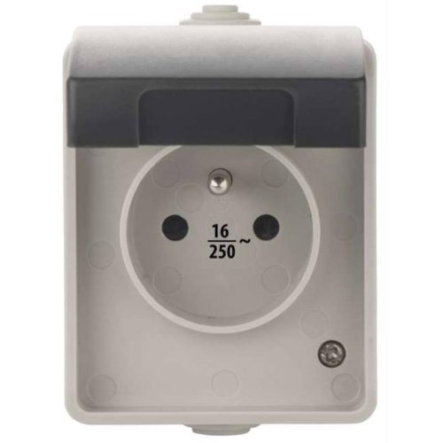 produkt: zásuvka s ochranným kolíkem a víčkem design: FRENCH typ: 250 V~/16 A max. barva: šedo-černá způsob montáže: na stěnu krytí: IP54 provedení: 1 nás. voděodolná prodejní obal: …
