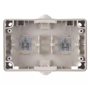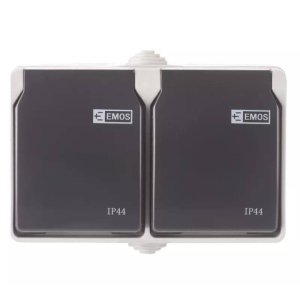 produkt: zásuvka dvojnásobná s ochrannými kolíky a víčky s propojením design: FRENCH typ: 250 V~/16 A max. barva: šedo-černá způsob montáže: na stěnu krytí: IP44 provedení: 2 nás. voděodolná …