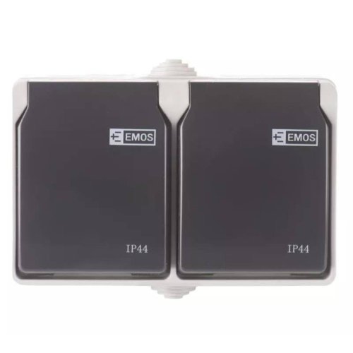 Zásuvka nástěnná dvojitá, 250V / 16A, IP44