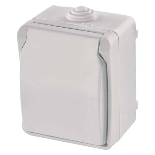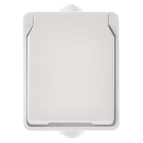 zásuvka jednonásobná s ochranným kolíkem a víčkem design: FRENCH typ: 250 V~/16 A max. barva: bílá způsob montáže: na stěnu krytí : IP54
