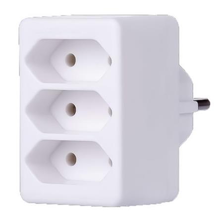 Roztrojka 230V - bílá - 230V, 3x2,5A max - baleno po 1ks - závěs s EAN kodem - 1x kulatá zástrčka - 3x plochá zásuvka