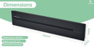 Zásuvková lišta - zápustná montáž • kompaktní rozměry 8 x 2 x 60 cm • připojení až 7 zásuvkových modulů • napájení 230V, 50Hz • ideální pro domácí i kancelářské využití • jmenovitý proud 32 A • robustní hliníková slitina • jmenovitý výkon 8000 W • ochrana IP20 • izolační napětí 500V • snadná manipulace a individuální uspořádání modulů v zásuvkové liště