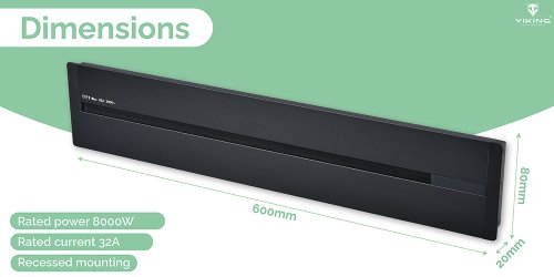 Technické specifikace: Model: Zásuvková lišta - zápustná Viking LZ60 Typ zásuvkové lišty: Zápustná Materiál: hliníková slitina Jmenovitý výkon: 8000 W Jmenovitý proud: 32 A Jmenovité napětí: 230V Jmenovitá frekvence: 50 Hz Jmenovité izolační napětí: 500V Ochrana: IP20 Rozměry: 8 cm x 2 cm x 60 cm Hmotnost: 800g
