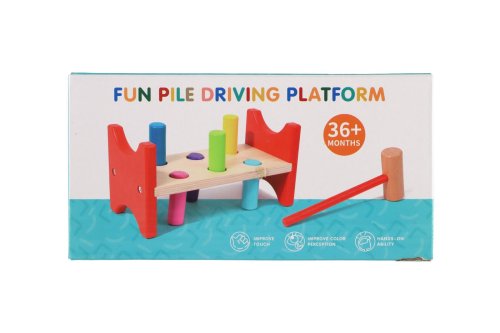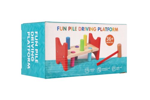 Klasická dřevěná zatloukačka s barevnými kolíčky a pevným kladívkem přináší dětem spoustu zábavy a zároveň rozvíjí jejich motoriku, koordinaci ruky a oka i sílu úchopu. Skvělá volba pro první „pracovní“ hru malých řemeslníků. Rozměr balení: 20 × 10 × 9,5 cm Vhodné pro děti od 18 měsíců