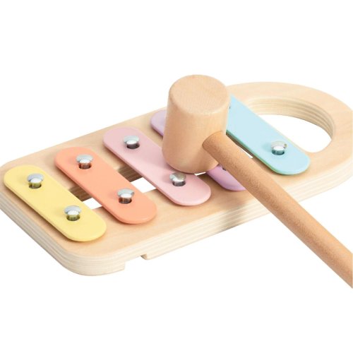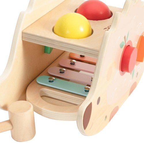 Veselý dřevěný ježek v sobě ukrývá hned dvě oblíbené funkce v jednom! Děti si s touto hračkou nejen procvičí přesnost při zatloukání barevných tvarů pomocí kladívka, ale zároveň mohou objevovat tóny ukryté v xylofonu. Kombinace hry a hudby podporuje rozvoj motoriky, sluchového vnímání i logického myšlení. Roztomilý design, kvalitní dřevo a jemné barvy dělají z ježka krásnou ideální první multifunkční hračku. Rozměr balení: krabice 24 × 16 × 13 cm Vhodné pro děti od 10 měsíců