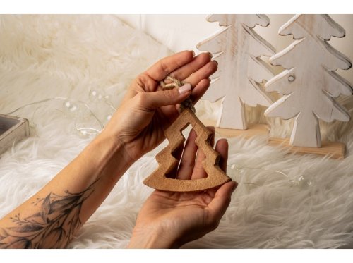 Závěs dřevo 100x100 mm stromeček, srdce, hvězda mix, přírodní