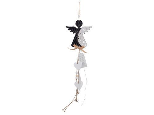 Závěs dřevo 110x117mm anděl, přírodní s gliterm, bílá, černá