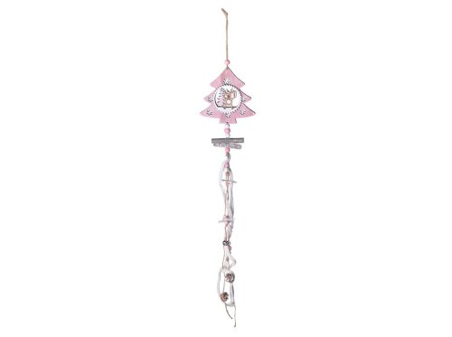 Závěs dřevo 120x120mm Sob uvnitř stromku, růžová, bílá