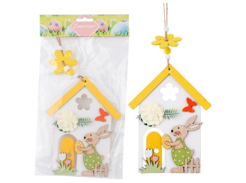 Závěs dřevo 135mm domeček s vel. zajíčkem, přírodní, barevná