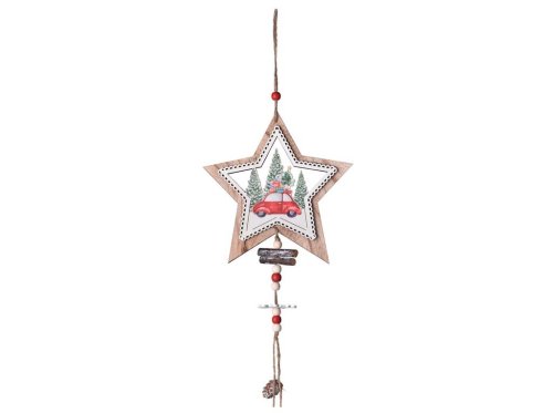 Dřevěná závěsná dekorace o rozměrech 170×180 mm s motivem hvězdy, auta a dárečku je půvabným doplňkem vánoční výzdoby. Přírodní dřevo dodává dekoraci hřejivý a autentický vzhled, zatímco barevné prvky v mixu variant přinášejí hravou sváteční náladu. Díky praktickému závěsu ji lze snadno umístit na dveře, okno, stěnu nebo vánoční větvičku. Ideální pro dotvoření útulné vánoční atmosféry nebo jako malý dekorativní dárek. Zboží je dodáváno v mixu. Doručované zboží je vybíráno náhodně a nelze vybrat konkrétní provedení.