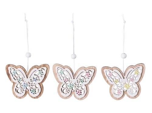 Závěs dřevo 3ks 80x10x60 mm motýl, mix