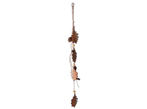 Závěs dřevo 50x80mm listy, přírodní, hnědá, oranžová