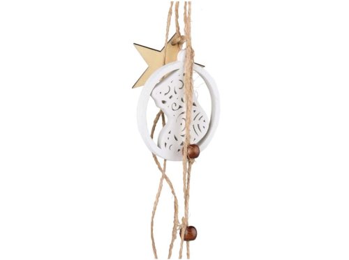 Závěs dřevo 60x60 mm, bota uvnitř kouličky s rolničkou, bílá