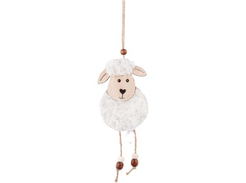 Závěs dřevo, textil 75x110mm ovečka, přírodní, bílá