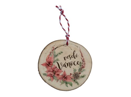Závěs dřevo Vánoční ozdoba 60 mm - Veselé Vánoce