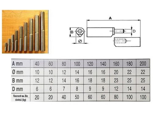 Okenní či dveřní závěs k přivaření z materiálu F1 bez ložiska.