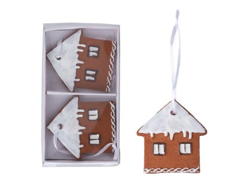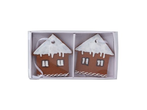 Závěs keramika 2ks 70mm perníkové domečky, hnědá, bílá