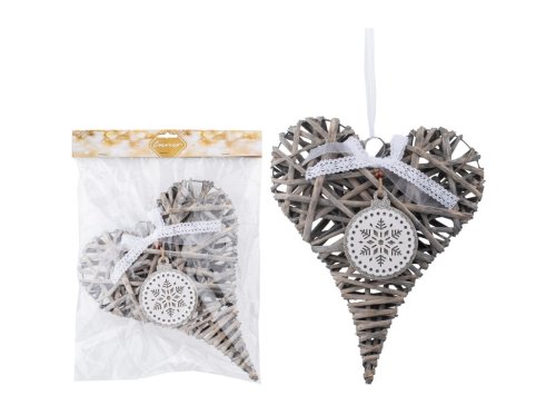 Závěs proutí 240x300mm ván. srdce, šedá, bílá s glitrem