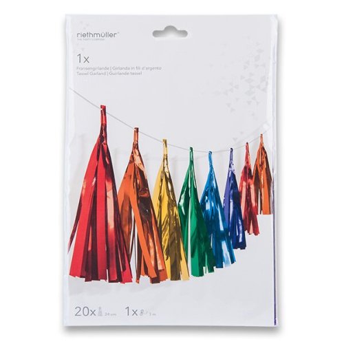 Závěsná dekorace barevných střapců. Délka 3 m. Výška 24 cm. Mix barev.