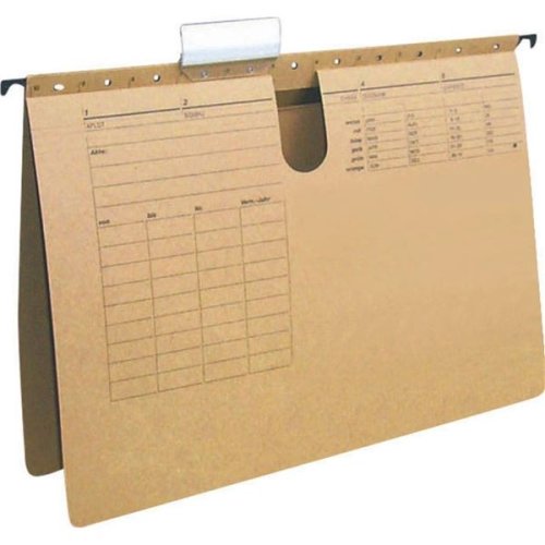 Závěsné desky z recyklovaného papíru 250 g/m2 Jezdec s popisovatelným štítkem Formát: A4 Provedení: s rychlovazačem Barva: přírodní hnědá