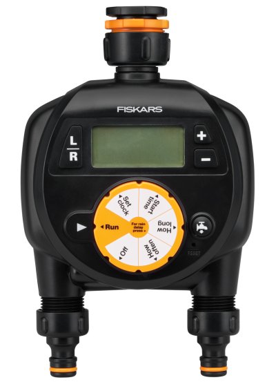 Zavlažování lze naprogramovat nezávisle pro každý výstup. Snadno programovatelný čas zahájení, doba trvání, frekvence zavlažování, zpoždění zavlažování, vč. možnosti okamžitého ručního zavlažování. Spojka ke kohoutku multi obsahuje tři velikosti závitů, které vyhovují většině běžných vodovodních kohoutků: ( 1/2, 3/4, 1). Ochrana proti vybití zastaví zavlažování v případě slabé baterie. Napájení s 2x AA bateriemi. (Baterie nejsou součástí balení.) Univerzální připojení je kompatibilní s ostatními značkami. Není mrazuvzdorné. Výška: 22,2 cm, délka: 8,3 cm, šířka: 15 cm. Hmotnost: 0,58 kg.