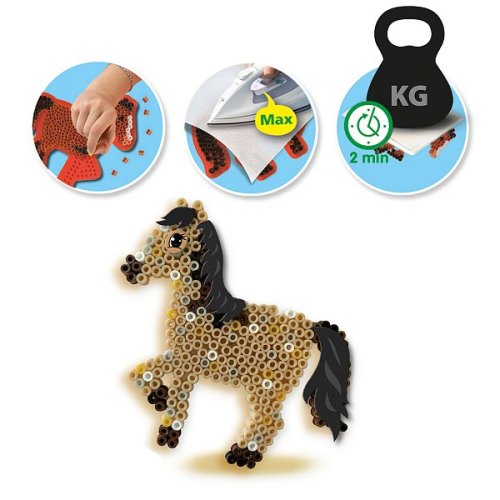 Prozkoumejte kreativitu se sadou korálků Koně – nádhernou zažehlovací sadou korálků pro děti, které milují koně a umělecké projekty. Sada obsahuje 1200 ks zažehlovacích korálků, podložku ve tvaru koně, sadu samolepek a zažehlovací papír. Tato dětská řemeslná sada pomáhá rozvíjet jemnou motoriku, trpělivost a kreativitu, když děti aranžují korálky a vytvářejí realistické vzory koní. Korálky neobsahují PVC. Baleno v krabičce. Rozměry balení: 20 x 15 x 4 cm. Nevhodné pro děti do 3 let. Věk: 5+