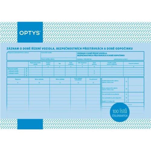 Záznam o provozu vozidla nákladní dopravy, 5x100l.